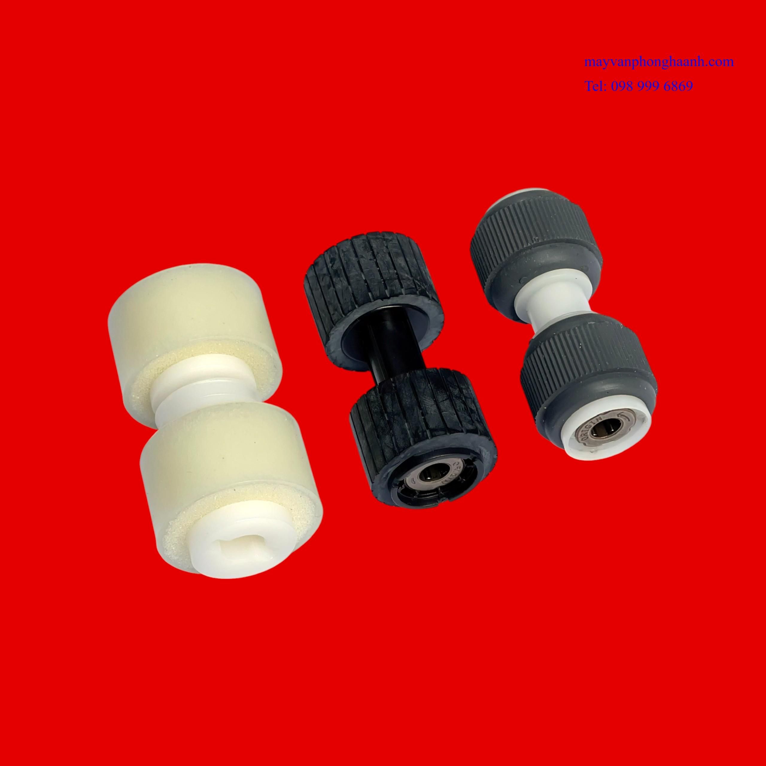 - Thuyết minh: Bộ cao su kéo giấy cụm ADF ( Automatic Document Feeder - khay nạp tài liệu tự động ) có vai trò rất quan trọng trong quá trình tự động nạp giấy để sao chép hoặc Scan tài liệu. Nhiệm vụ của bộ cao su này bao gồm: Kéo từng tờ giấy từ khay ADF vào bộ phận scan/sao chép. Bộ cao su gồm các bánh xe cao su tách giấy, kéo giấy, và cuốn giấy hoạt động đồng bộ, để đảm bảo chỉ một tờ giấy được kéo vào mỗi lần, tránh hiện tượng kéo nhiều tờ cùng lúc ( Double feed), gây kẹt giấy hoặc scan/sao chép sai. Sau khi kéo giấy ra khỏi khay, bộ cao su còn đảm nhiệm việc dẫn giấy đi đúng lộ trình, đảm bảo tài liệu được đưa qua vùng quét một cách chính xác. Giúp tăng độ chính xác trong quá trình quét hoặc sao chép hàng loạt. Giảm thiểu kẹt giấy do lỗi kéo nhiều tờ hoặc không kéo được giấy. Tối ưu hóa tốc độ và hiệu suất hoạt động của khay ADF. Sau một thời gian sử dụng, cao su sẽ bị mòn, trơ lỳ hoặc tự lão hóa, khiến việc kéo giấy bị lỗi.