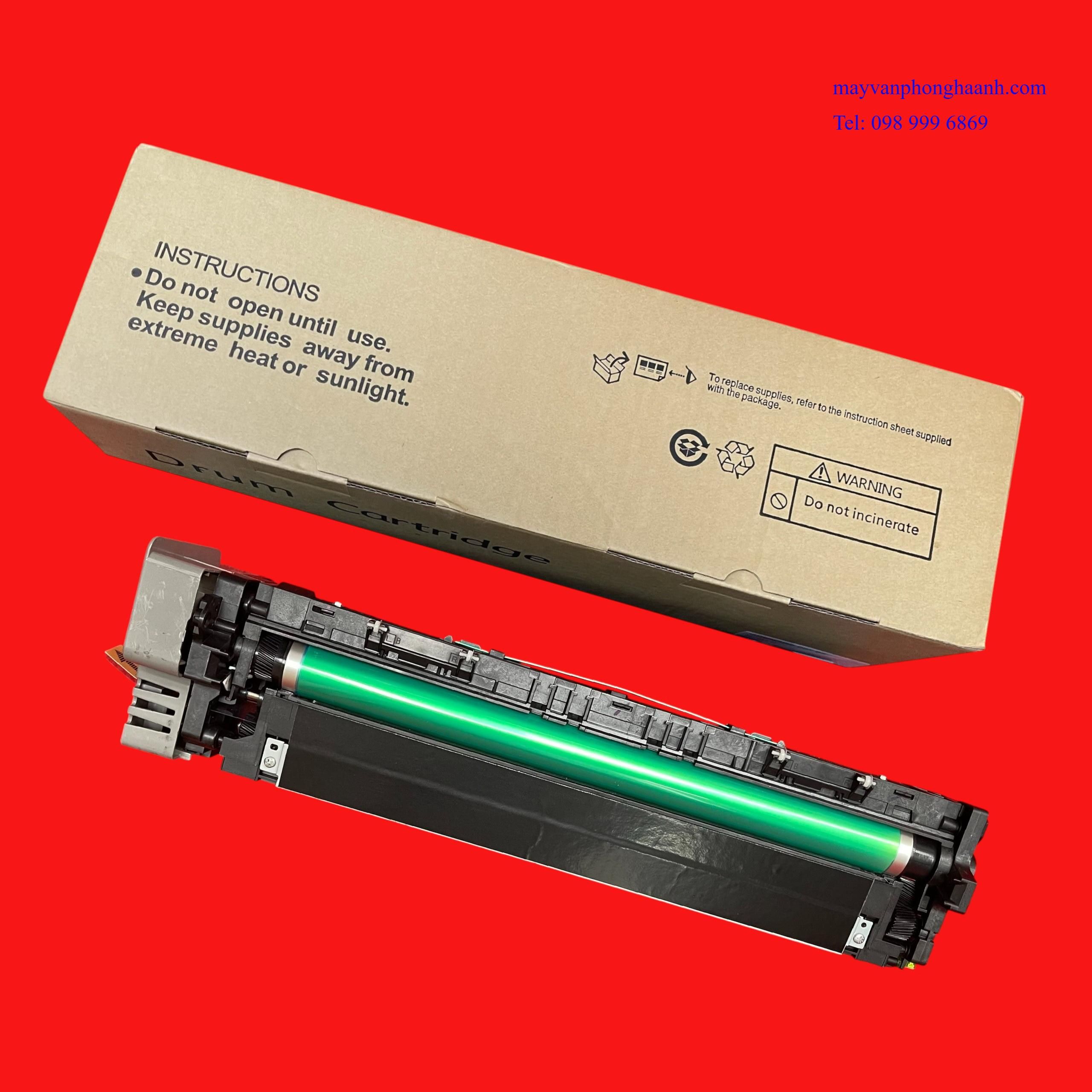 - Thuyết minh: Cụm trống từ máy photocopy hay còn gọi là khối trống từ, là bộ phận quan trọng của máy. Tìm hiểu thêm về trống máy photocopy ta thấy: Trống - còn có tên gọi là trống từ ( Organic Photo Conductor - Quang dẫn ảnh ). Trống có hình trụ rỗng được làm từ hợp kim phi từ tính như nhôm, hợp kim nhôm. Trên bề mặt trống được phủ lớp quang dẫn. Chất quang dẫn là hợp chất đặc biệt có hai tính chất: Một là tính nhiễm điện - dễ nhiễm điện tích âm và bảo lưu được điện tích trong bóng tối. Hai là tính cảm quang, sẽ bị mất điện tính khi có ánh sáng chiếu vào, ánh sáng càng mạnh thì điện tích mất đi càng nhiều và ngược lại (tỉ lệ thuận với cường độ ánh sáng chiếu vào). Khay từ chứa bột từ, do bột từ có từ tính nên nó sẽ có nhiệm vụ hút các hạt mực trong hộp mực sau đó ( vận chuyển ) đến gần trống. Tại bề mặt của trống nhiễm điện tích âm nên trống sẽ hút lại các hạt mực và rải đều lên trống, sau đó đẩy các hạt từ quay trở lại hộp từ và tiếp tục chu trình làm việc tiếp theo. Khi bản in bị vệt xước, bản in bị mờ… lỗi dó cụm trống từ, thì bạn phải thay cụm khác để công việc in ấn của bạn trở lại bình thường.