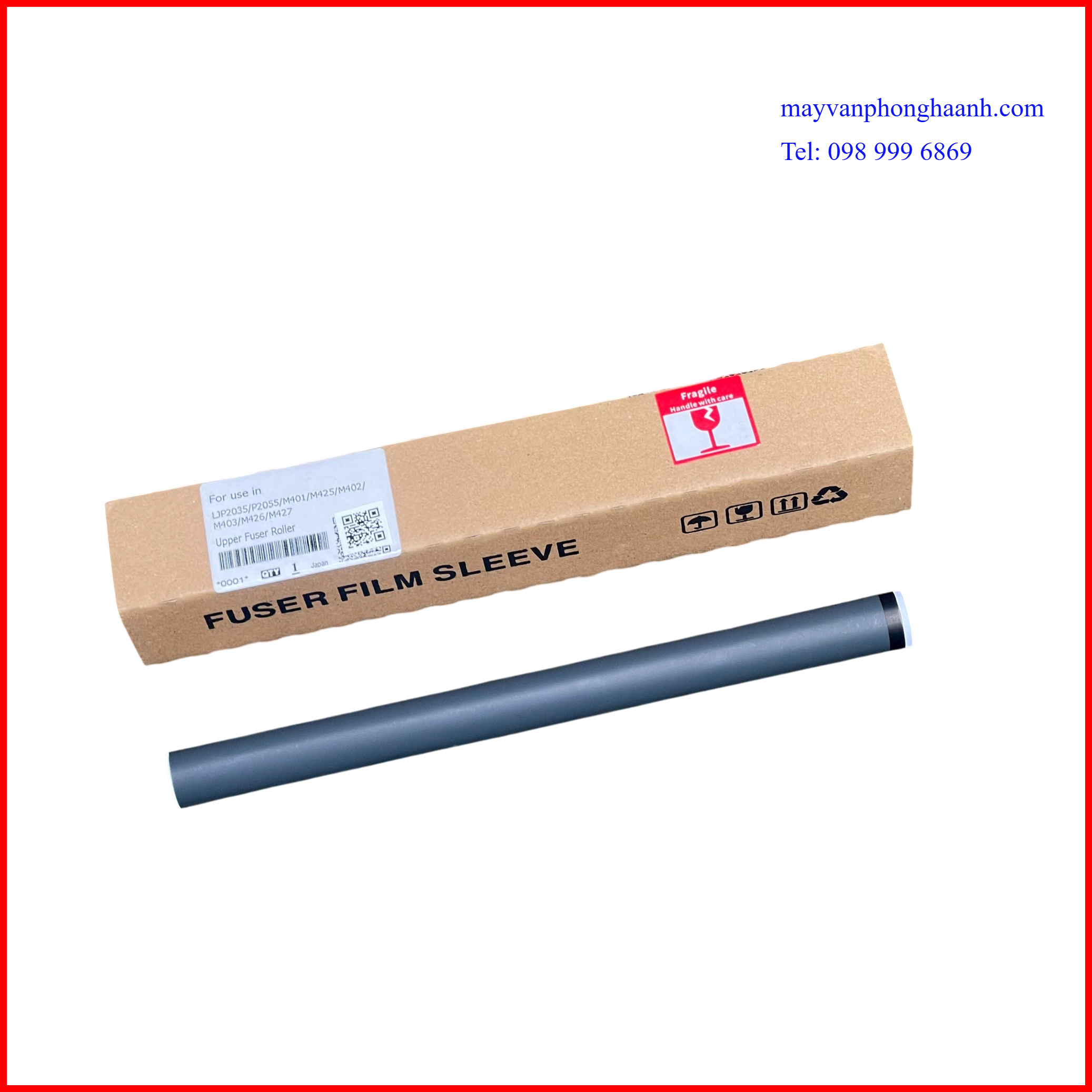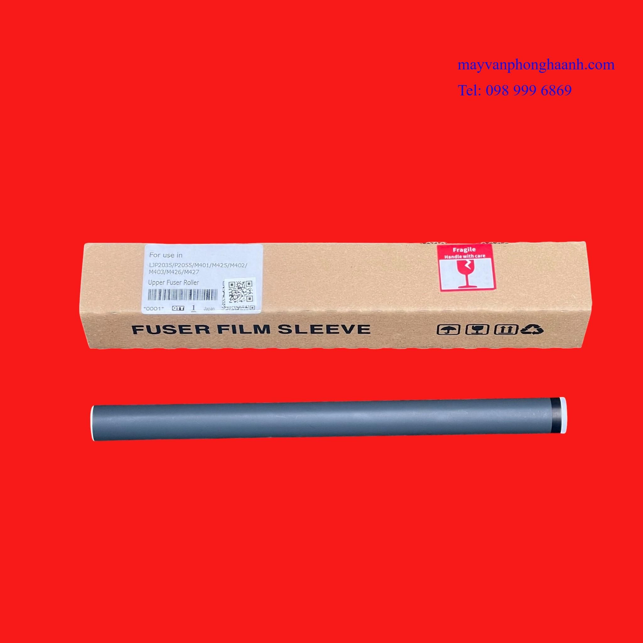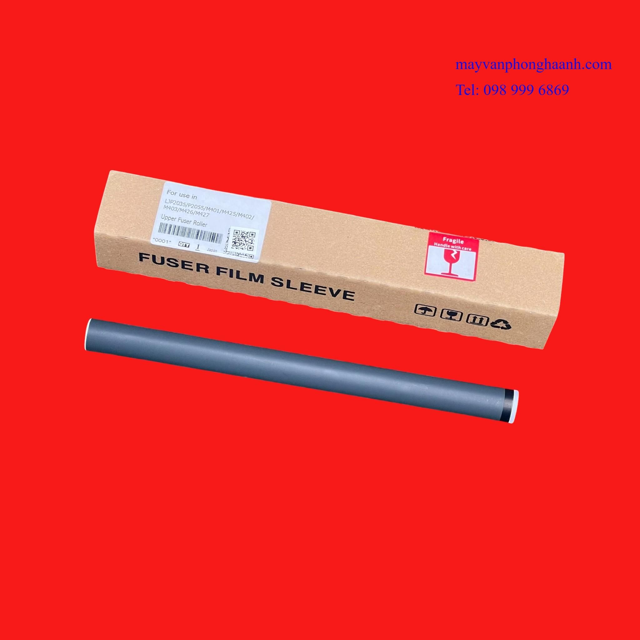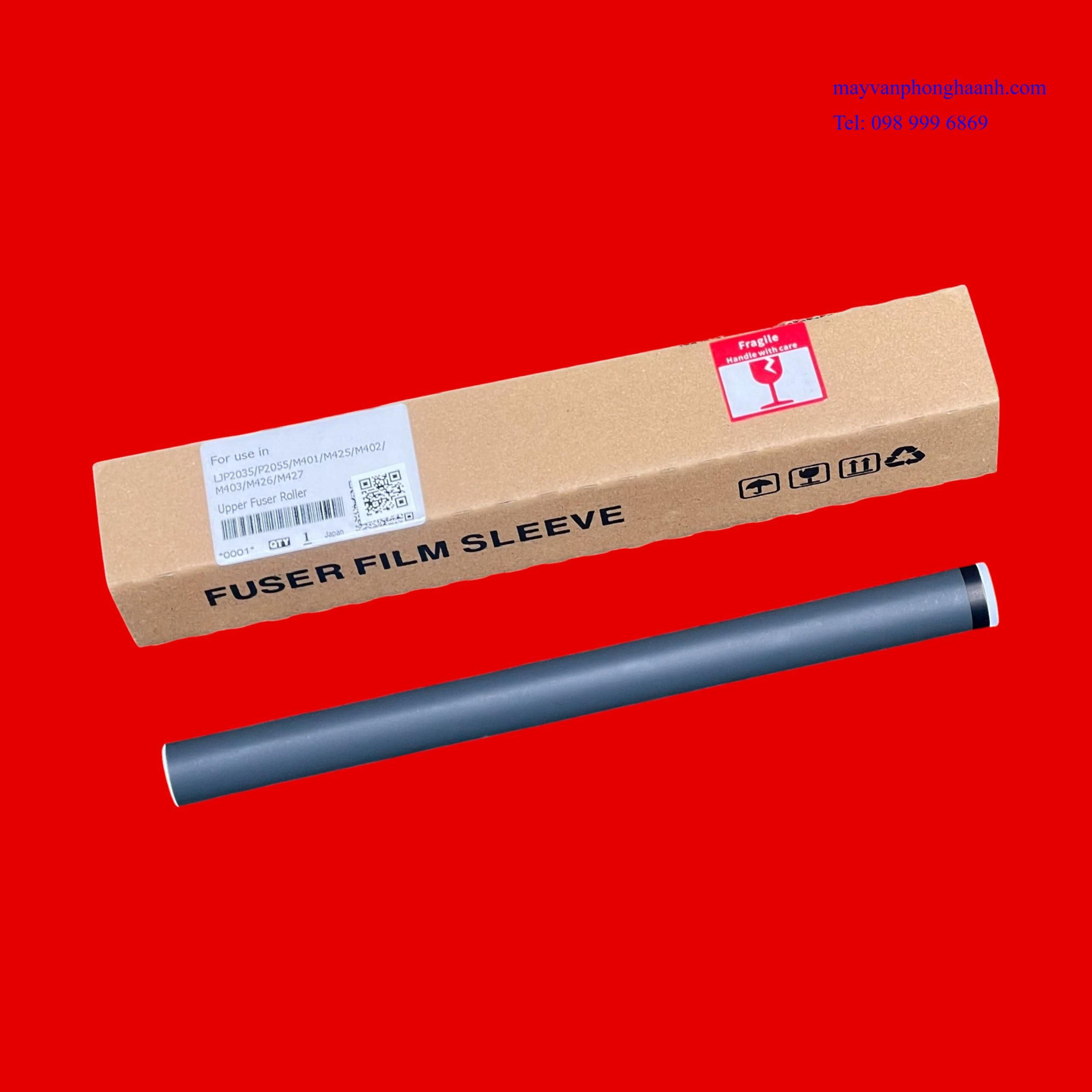 - Thuyết minh: Film sấy ( Fuser Film / Fixing Film / Bao lụa sấy ) là một linh kiện thuộc cụm sấy (fuser unit) của máy in laser. Nó là lớp màng mỏng chịu nhiệt cao, dùng để truyền nhiệt từ thanh nhiệt sang giấy nhằm làm chảy mực bột và cố định mực lên giấy. Film sấy trong máy in laser được tạo bới nhiều lớp vật liệu kỹ thuật. Lớp nền (Base layer) là vật liệu polyimide chịu nhiệt cao, tạo độ bền cơ học. Lớp dẫn nhiệt ( Thermal conductive layer ) giúp truyền nhiệt nhanh và đều từ thanh nhiệt ra bề mặt film. Lớp phủ bề mặt ( Surface coating )là lớp chống dính mực và giảm ma sát với giấy. Film sấy giữ vai trò trung gian truyền nhiệt và cố định mực: Nhận nhiệt từ thanh nhiệt rồi truyền sang giấy làm bột mực nóng chảy và thấm vào sợi giấy → mực bám chắc. Film sấy kết hợp với lô ép để ép mực vào giấy tạo bản in rõ nét.