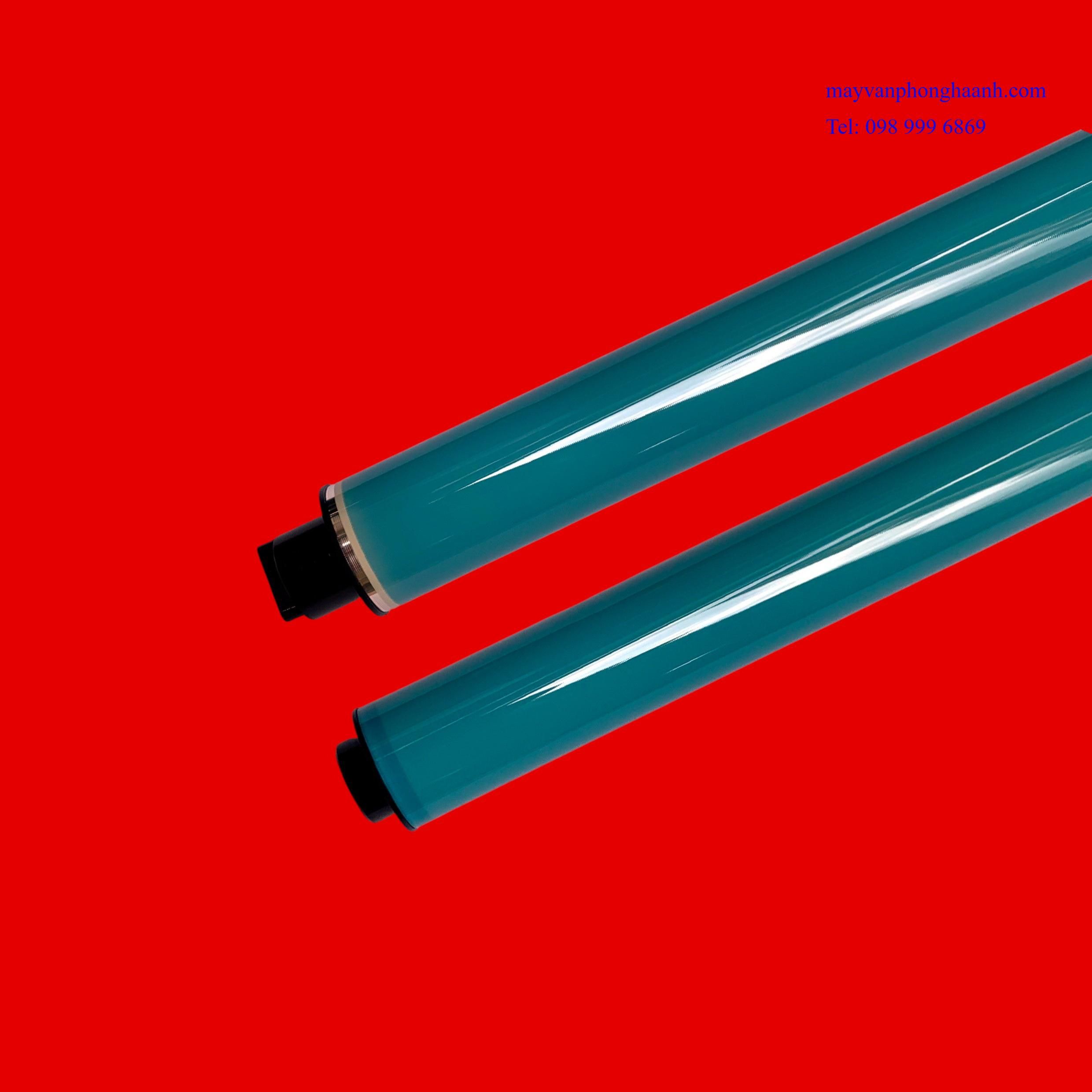 - Thuyết minh: Trống máy in còn được biết đến với tên gọi khác là Drum. Trống máy in đóng vai trò quan trọng, quyết định rất nhiều đến chất lượng bản in. Trống máy in được cấu tạo từ các thành phần chính sau đây: Thân trống có dạng hình trụ, được làm bằng kim loại phi từ tính, thường là nhôm. Bề mặt trống được tráng phủ lớp cảm Khi ánh sáng chiếu vào thì điện tích sẽ mất đi. Ánh sáng chiếu vào càng mạnh thì phần điện tích sẽ càng mất đi nhiều và ngược lại. Trống nhiễm điện tích âm từ trục sạc cao áp trống, đồng thời thực hiện bảo lưu điện tích khi ở trong bóng tối. Khi máy in thực hiện sao chụp, hình ảnh sẽ nhận được lệnh quét, sau đó sẽ tiếp tục xử lý và chuyển xuống trống . Quá trình tạo ra hình ảnh được thực hiện theo nguyên lý sau: Tích điện cho trống diễn ra khi trống tiến hành quay, nó sẽ lướt vào điện cực trống. Trong khi đó, điện cực trống lại là cực điện dương, vì vậy mặt trống lúc này sẽ nhiễm điện dương. Tiếp theo sẽ hiện ảnh lên mặt trống: Lúc này lớp quang dẫn được phủ trên bề mặt trống, sẽ phát huy tác dụng dẫn điện khi có ánh sáng chiếu vào. Tiếp theo, laser sẽ chiếu thẳng trực tiếp vào trống. Nơi nào được ánh sáng chiếu vào thì sẽ được trung hòa, mực sẽ hút chỗ đó. Còn phần nào không được ánh sáng chiếu vào thì bề mặt của trống sẽ tiến hành đẩy mực làm cho bản in được nét hơn. Đưa mực đến trống: Mực in sẽ nhiễm điện tích âm, khi chúng di chuyển đến mặt trống, lúc này phần điện dương sẽ bị chúng hút vào trên mặt trống. Chuyển nét mực in bên trên mặt trống sang phần giấy trắng. Đến công đoạn này là sự di chuyển của trang giấy đi qua phần điện cực thứ hai hay còn gọi là điện cực giấy. Phần điện cực này sẽ có tác dụng làm cho giấy nhiễm tích điện dương, vì thế nét mực in từ mặt trống sẽ được chuyển sang trang giấy. Sau đó giấy sẽ được chuyển đến phần sấy với nhiệt độ cao giúp làm nóng. Hạt mực in lúc này sẽ tan chảy và kết dính lại với nhau và tạo ra một bản in. Sau một thời gian dài sử dụng máy in các lớp quang dẫn sẽ bị bào mòn khiến cho bề mặt trống in cũng bị trầy xước, ảnh hưởng đến chất lượng bản in. Lúc này bạn cần phải thay trống để đảm bảo thiết bị hoạt động hiệu quả.