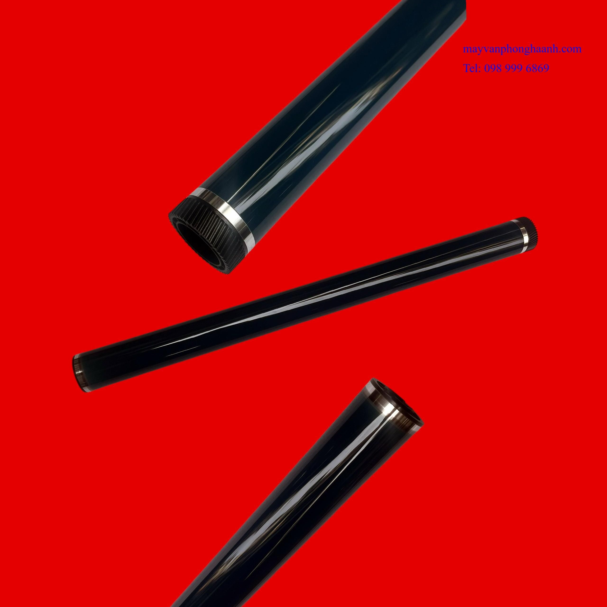 - Thuyết minh: Trống ( Drum ) đóng vai trò quan trọng, quyết định đến chất lượng bản in. Trống được cấu tạo từ các thành phần chính sau đây: Thân trống có dạng hình trụ tròn, bên trong rỗng và được làm bằng kim loại phi từ tính, thường là nhôm. Bề mặt trống được tráng phủ một lớp cảm Khi ánh sáng chiếu vào thì điện tích sẽ mất đi. Ánh sáng chiếu vào càng mạnh thì phần điện tích sẽ càng mất đi nhiều và ngược lại. Trống máy in còn có thành phần nhiễm điện tích âm, đồng thời thực hiện bảo lưu điện tích khi ở trong bóng tối. Chất cảm quang: Khi máy in thực hiện sao chụp, hình ảnh sẽ nhận được lệnh quét, sau đó sẽ tiếp tục xử lý và chuyển xuống Drum . Quá trình tạo ra hình ảnh được thực hiện theo nguyên lý sau: Tích điện cho trống diễn ra khi trống tiến hành quay, nó sẽ lướt vào điện cực trống. Trong khi đó, điện cực trống lại là cực điện dương, vì vậy mặt trống lúc này sẽ nhiễm điện dương. Tiếp theo sẽ hiện ảnh lên mặt trống: Lúc này lớp quang dẫn được phủ trên bề mặt trống, sẽ phát huy tác dụng dẫn điện khi có ánh sáng chiếu vào. Tiếp theo, laser sẽ chiếu thẳng trực tiếp vào trống. Nơi nào được ánh sáng chiếu vào thì sẽ được trung hòa, mực sẽ hút chỗ đó. Còn phần nào không được ánh sáng chiếu vào thì bề mặt của trống sẽ tiến hành đẩy mực làm cho bản in được nét hơn. Bơm mực vào trống: Mực in sẽ nhiễm điện tích âm và có bột màu đen. Vì thế, khi chúng di chuyển đến mặt trống, lúc này phần điện dương sẽ bị chúng hút vào trên mặt trống. Chuyển nét mực in bên trên mặt trống sang phần giấy trắng: Đến công đoạn này là sự di chuyển của trang giấy đi qua phần điện cực thứ 2 hay còn gọi là điện cực giấy. Phần điện cực này sẽ có tác dụng làm cho giấy nhiễm tích điện dương, vì thế nét mực in từ mặt trống sẽ được chuyển sang trang giấy. Trang giấy: Đến giai đoạn này trang giấy sẽ được chuyển đến phần sấy với nhiệt độ cao giúp làm nóng. Hạt mực in lúc này sẽ tan chảy và kết dính lại với nhau và tạo ra một bản in như mong đợi. Sau một thời gian dài sử dụng máy in các lớp quang dẫn sẽ bị bào mòn khiến cho bề mặt trống in cũng bị trầy xước, ảnh hưởng đến chất lượng bản in. Lúc này người dùng cần phải thay Drum máy in đúng lúc để đảm bảo thiết bị hoạt động hiệu quả.