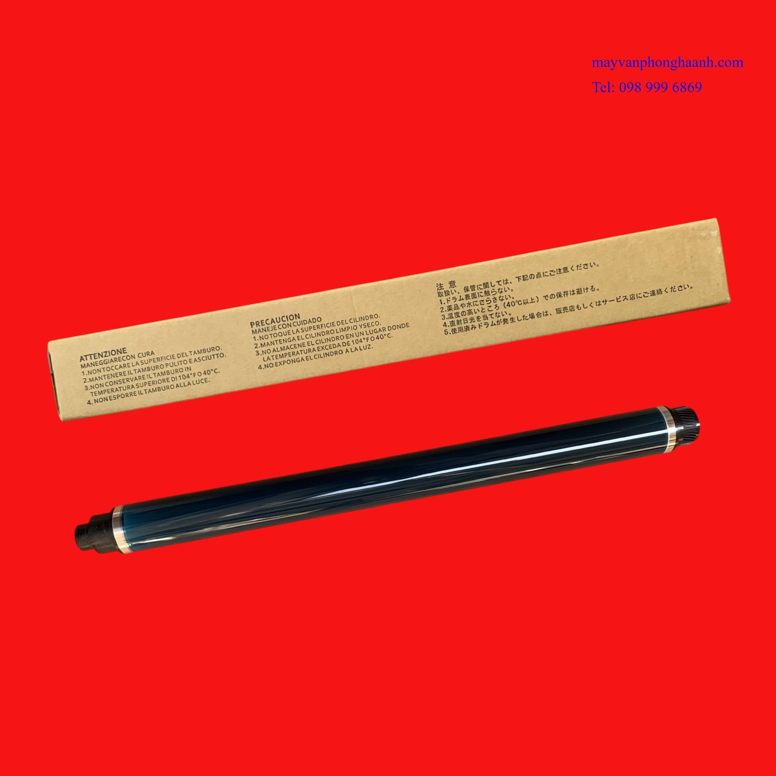 - Thuyết minh: Trống ( Drum ) là bộ phận chính của máy photocopy có nhiệm vụ chuyển đổi hình ảnh. Trống còn có tên gọi là trống từ, trống OPC ( Organic Photo Conductor - Quang dẫn ảnh ). Trống có dạng hình trụ rỗng, thường được làm từ hợp kim phi từ tính như nhôm, hợp kim nhôm. Trên bề mặt trống được phủ lớp quang dẫn. Chất quang dẫn là hợp chất đặc biệt có hai tính chất: Một là tính nhiễm điện - dễ nhiễm điện tích âm và bảo lưu được điện tích trong bóng tối. Hai là tính cảm quang, sẽ bị mất điện tính khi có ánh sáng chiếu vào, ánh sáng càng mạnh thì điện tích mất đi càng nhiều và ngược lại (tỉ lệ thuận với cường độ ánh sáng chiếu vào). Do đảm nhiệm vai trò chính trong quá trình sao chụp, tạo ảnh, nên trống cần được bảo quản, bảo dưỡng tốt, chỉ bị một vết xước nhỏ trên bề mặt trống, thì trên bản in sẽ bị vệt đen kéo dài, bản in bị lem nhem… Trong quá trình hoạt động, trống luôn cọ xát với các bộ phận khác trong cụm trống ( Drum Cartridge ) như gạt trống ( Drum Blade ), trục sạc cao áp trống ( Primary Charger Roller )… nên lớp quang dẫn sẽ bị mòn dần, cũng có thể do người dùng, vô ý để rơi dị vật vào trong máy… cũng sẽ làm xước, hỏng trống… nó sẽ ảnh hưởng đến chất lượng bản in
