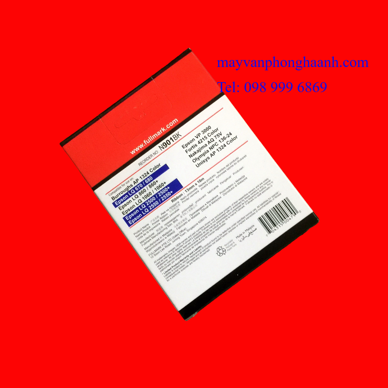 - Thuyết minh: Khi sử dụng máy in kim cho công việc in ấn, vấn đề luôn được bạn quan tâm đó là băng mực. Băng mực là vật tư tiêu hao trong qua trình sử dụng máy in. Để thay thế cho băng mực chính hãng, có giá rất cao và ít trên trên thị trường. Giải pháp dùng băng mực của bên thứ ba luôn là lựa chọn tối ưu. Công ty Hà Anh nhập khẩu và phân phối băng mực tương thích thương hiệu Fullmark đáp ứng tốt cho nhu cầu in ấn của bạn.