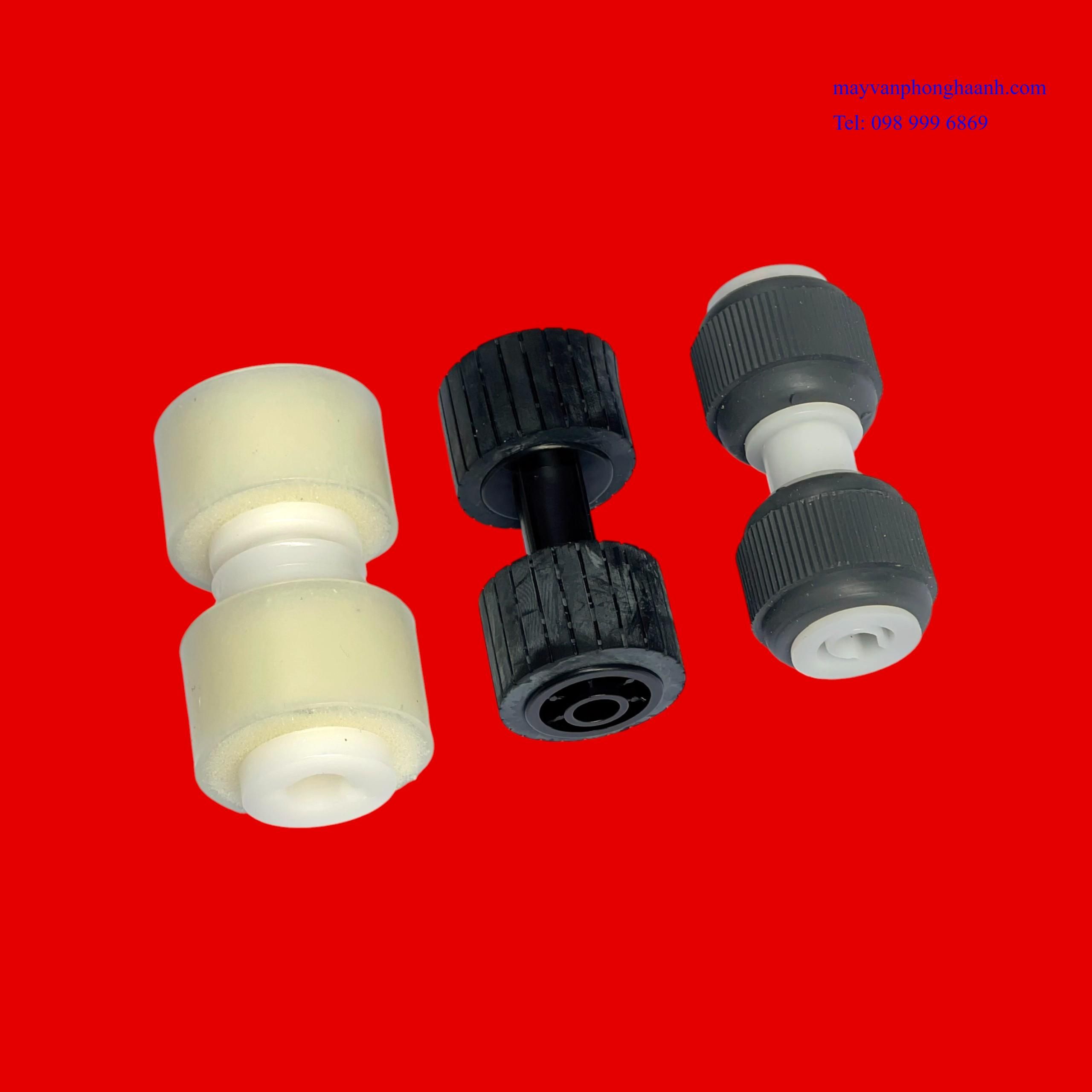 - Thuyết minh: Bộ cao su kéo giấy cụm ADF ( Automatic Document Feeder - khay nạp tài liệu tự động ) có vai trò rất quan trọng trong quá trình tự động nạp giấy để sao chép hoặc Scan tài liệu. Nhiệm vụ của bộ cao su này bao gồm: Kéo từng tờ giấy từ khay ADF vào bộ phận scan/sao chép. Bộ cao su gồm các bánh xe cao su tách giấy, kéo giấy, và cuốn giấy hoạt động đồng bộ, để đảm bảo chỉ một tờ giấy được kéo vào mỗi lần, tránh hiện tượng kéo nhiều tờ cùng lúc ( Double feed), gây kẹt giấy hoặc scan/sao chép sai. Sau khi kéo giấy ra khỏi khay, bộ cao su còn đảm nhiệm việc dẫn giấy đi đúng lộ trình, đảm bảo tài liệu được đưa qua vùng quét một cách chính xác. Giúp tăng độ chính xác trong quá trình quét hoặc sao chép hàng loạt. Giảm thiểu kẹt giấy do lỗi kéo nhiều tờ hoặc không kéo được giấy. Tối ưu hóa tốc độ và hiệu suất hoạt động của khay ADF. Sau một thời gian sử dụng, cao su sẽ bị mòn, trơ lỳ hoặc tự lão hóa, khiến việc kéo giấy bị lỗi.