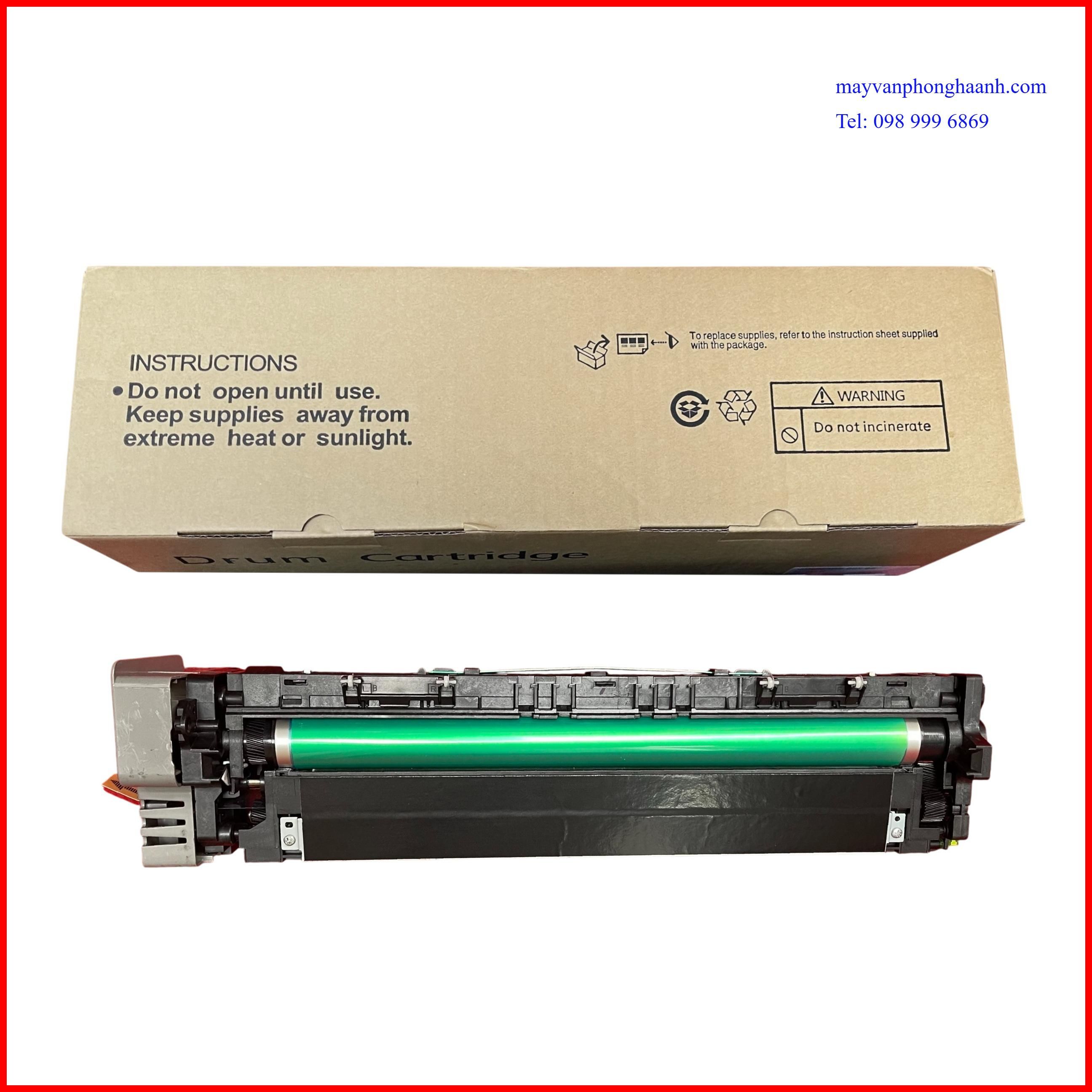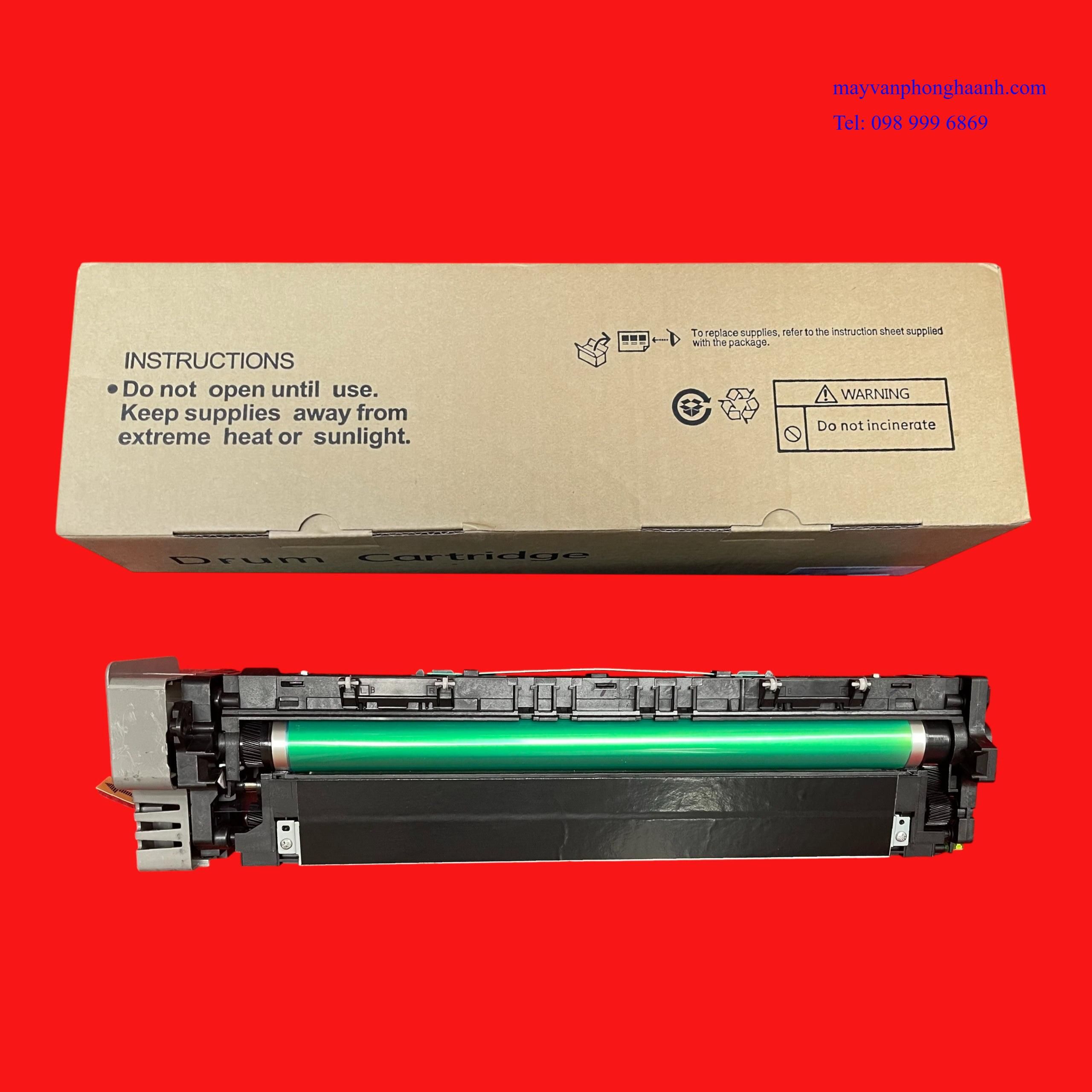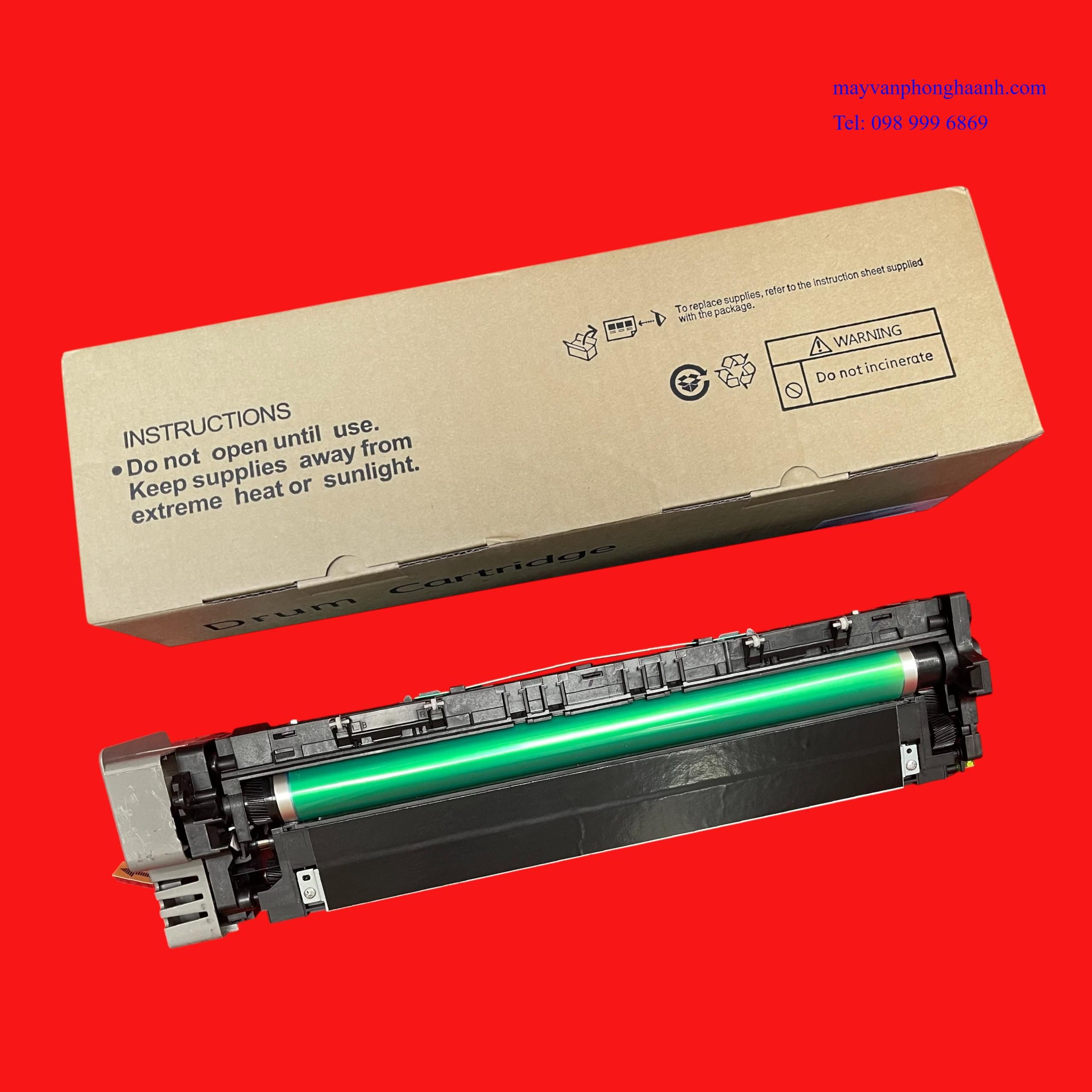 - Thuyết minh: Cụm trống từ máy photocopy hay còn gọi là khối trống từ, là bộ phận quan trọng của máy. Tìm hiểu thêm về trống máy photocopy ta thấy: Trống - còn có tên gọi là trống từ ( Organic Photo Conductor - Quang dẫn ảnh ). Trống có hình trụ rỗng được làm từ hợp kim phi từ tính như nhôm, hợp kim nhôm. Trên bề mặt trống được phủ lớp quang dẫn. Chất quang dẫn là hợp chất đặc biệt có hai tính chất: Một là tính nhiễm điện - dễ nhiễm điện tích âm và bảo lưu được điện tích trong bóng tối. Hai là tính cảm quang, sẽ bị mất điện tính khi có ánh sáng chiếu vào, ánh sáng càng mạnh thì điện tích mất đi càng nhiều và ngược lại (tỉ lệ thuận với cường độ ánh sáng chiếu vào). Khay từ chứa bột từ, do bột từ có từ tính nên nó sẽ có nhiệm vụ hút các hạt mực trong hộp mực sau đó ( vận chuyển ) đến gần trống. Tại bề mặt của trống nhiễm điện tích âm nên trống sẽ hút lại các hạt mực và rải đều lên trống, sau đó đẩy các hạt từ quay trở lại hộp từ và tiếp tục chu trình làm việc tiếp theo. Khi bản in bị vệt xước, bản in bị mờ… lỗi dó cụm trống từ, thì bạn phải thay cụm khác để công việc in ấn của bạn trở lại bình thường.