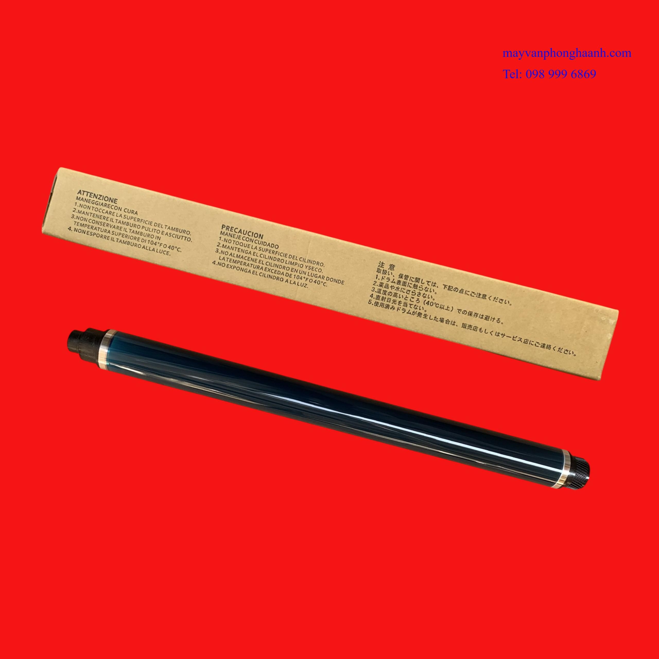 - Thuyết minh: Trống ( Drum ) là bộ phận chính của máy photocopy có nhiệm vụ chuyển đổi hình ảnh. Trống còn có tên gọi là trống từ, trống OPC ( Organic Photo Conductor - Quang dẫn ảnh ). Trống có dạng hình trụ rỗng, thường được làm từ hợp kim phi từ tính như nhôm, hợp kim nhôm. Trên bề mặt trống được phủ lớp quang dẫn. Chất quang dẫn là hợp chất đặc biệt có hai tính chất: Một là tính nhiễm điện - dễ nhiễm điện tích âm và bảo lưu được điện tích trong bóng tối. Hai là tính cảm quang, sẽ bị mất điện tính khi có ánh sáng chiếu vào, ánh sáng càng mạnh thì điện tích mất đi càng nhiều và ngược lại (tỉ lệ thuận với cường độ ánh sáng chiếu vào). Do đảm nhiệm vai trò chính trong quá trình sao chụp, tạo ảnh, nên trống cần được bảo quản, bảo dưỡng tốt, chỉ bị một vết xước nhỏ trên bề mặt trống, thì trên bản in sẽ bị vệt đen kéo dài, bản in bị lem nhem… Trong quá trình hoạt động, trống luôn cọ xát với các bộ phận khác trong cụm trống ( Drum Cartridge ) như gạt trống ( Drum Blade ), trục sạc cao áp trống ( Primary Charger Roller )… nên lớp quang dẫn sẽ bị mòn dần, cũng có thể do người dùng, vô ý để rơi dị vật vào trong máy… cũng sẽ làm xước, hỏng trống… nó sẽ ảnh hưởng đến chất lượng bản in